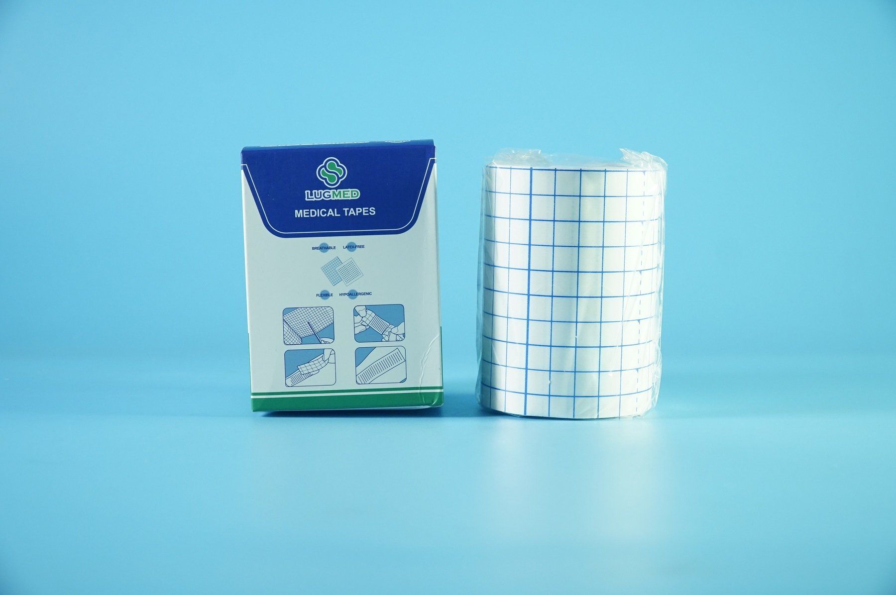 Băng cuộn co giãn LUGMED băng dán y tế caro xanh - Nhiều cỡ