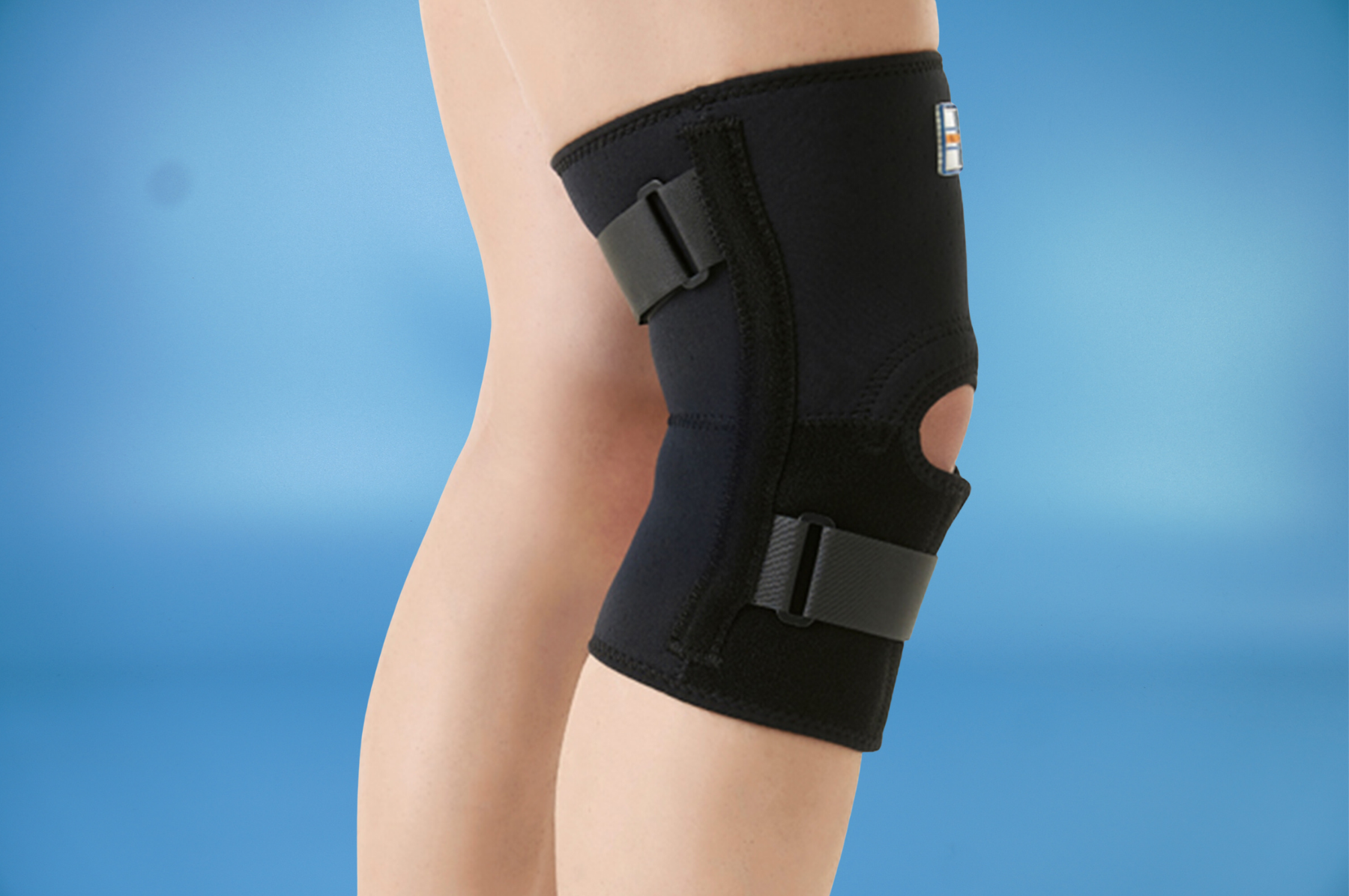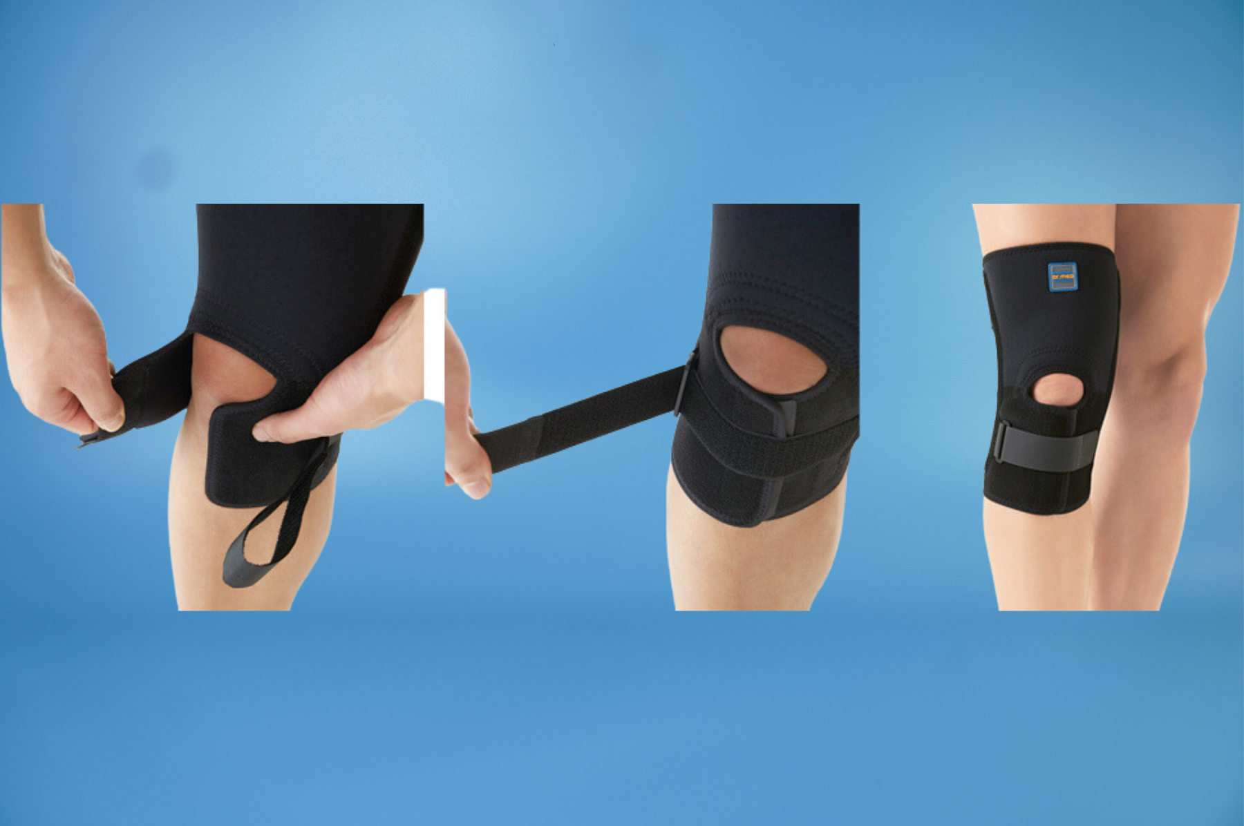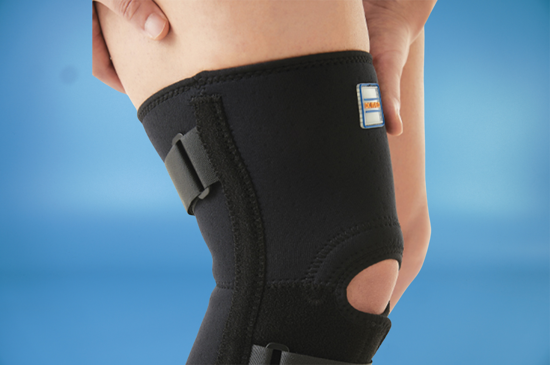 - Miếng đệm mở được thiết kế theo giải phẫu học ở vị trí bánh chè giúp nén và làm ổn định thêm