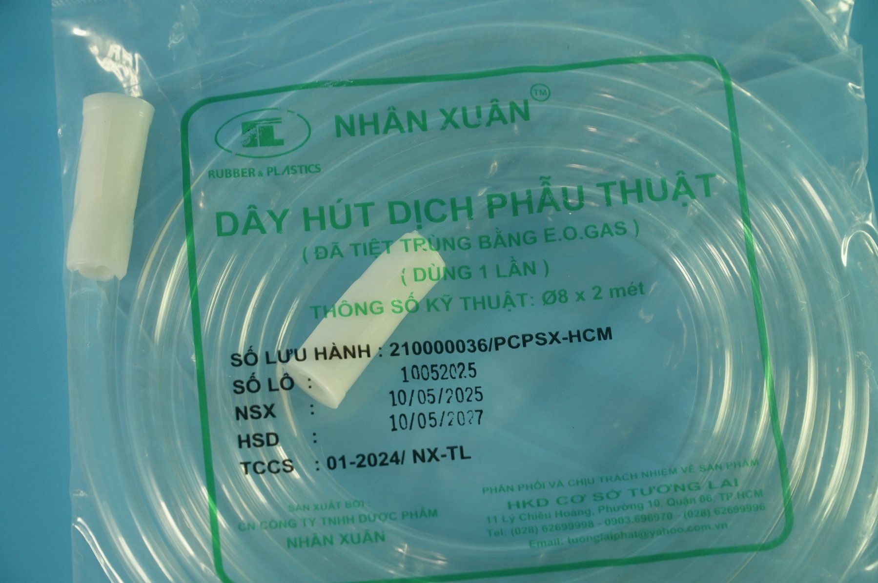 Dây hút dịch phẫu thuật Tương Lai dùng hút dịch phẩu thuật tiệt trùng - 8mmx2m