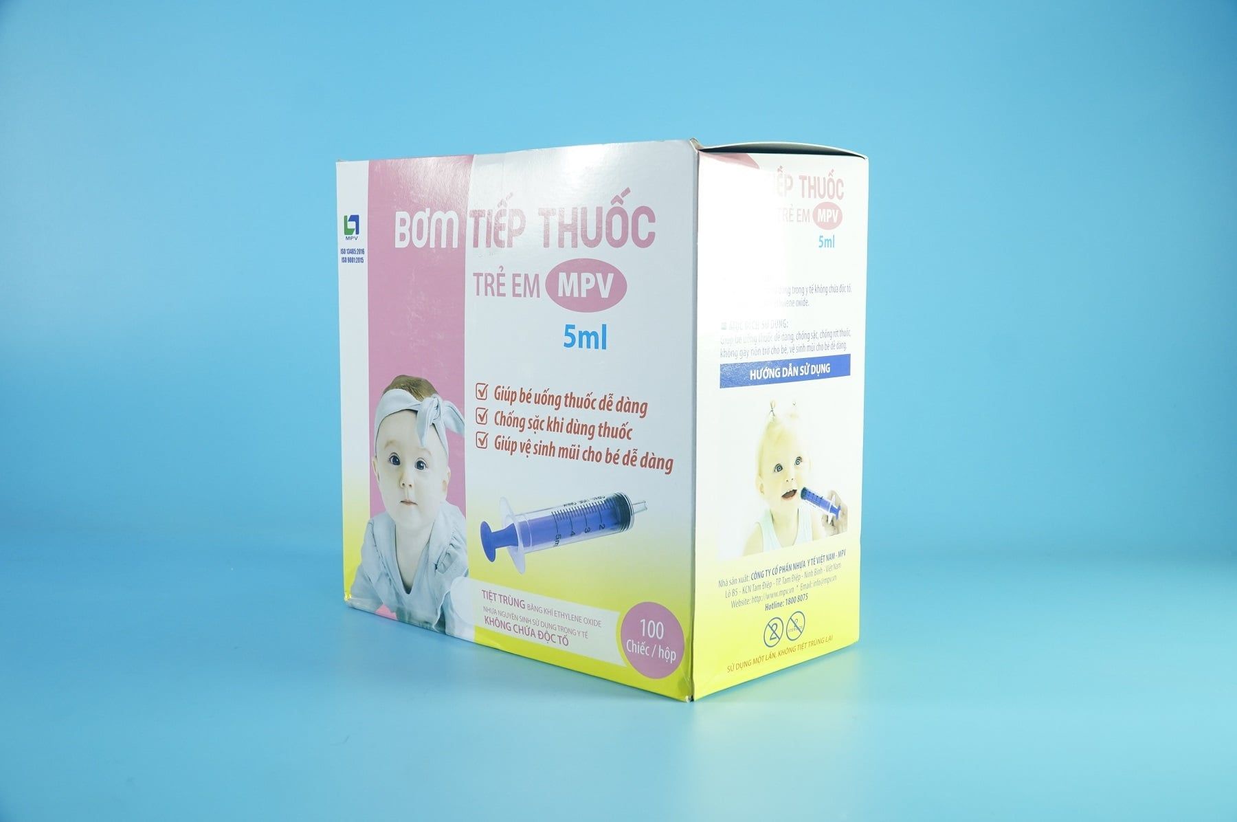 Hộp 100 bơm uống thuốc cho trẻ MPV 5ml là dụng cụ y tế chuyên dùng để cho trẻ uống thuốc dạng lỏng như siro, dung dịch, vitamin… một cách dễ dàng – chính xác – an toàn. Với thiết kế đầu to, bo tròn, sản phẩm giúp hạn chế tối đa tình trạng sặc thuốc, trào ngược, mang lại trải nghiệm thoải mái hơn cho bé và sự yên tâm cho cha mẹ.
