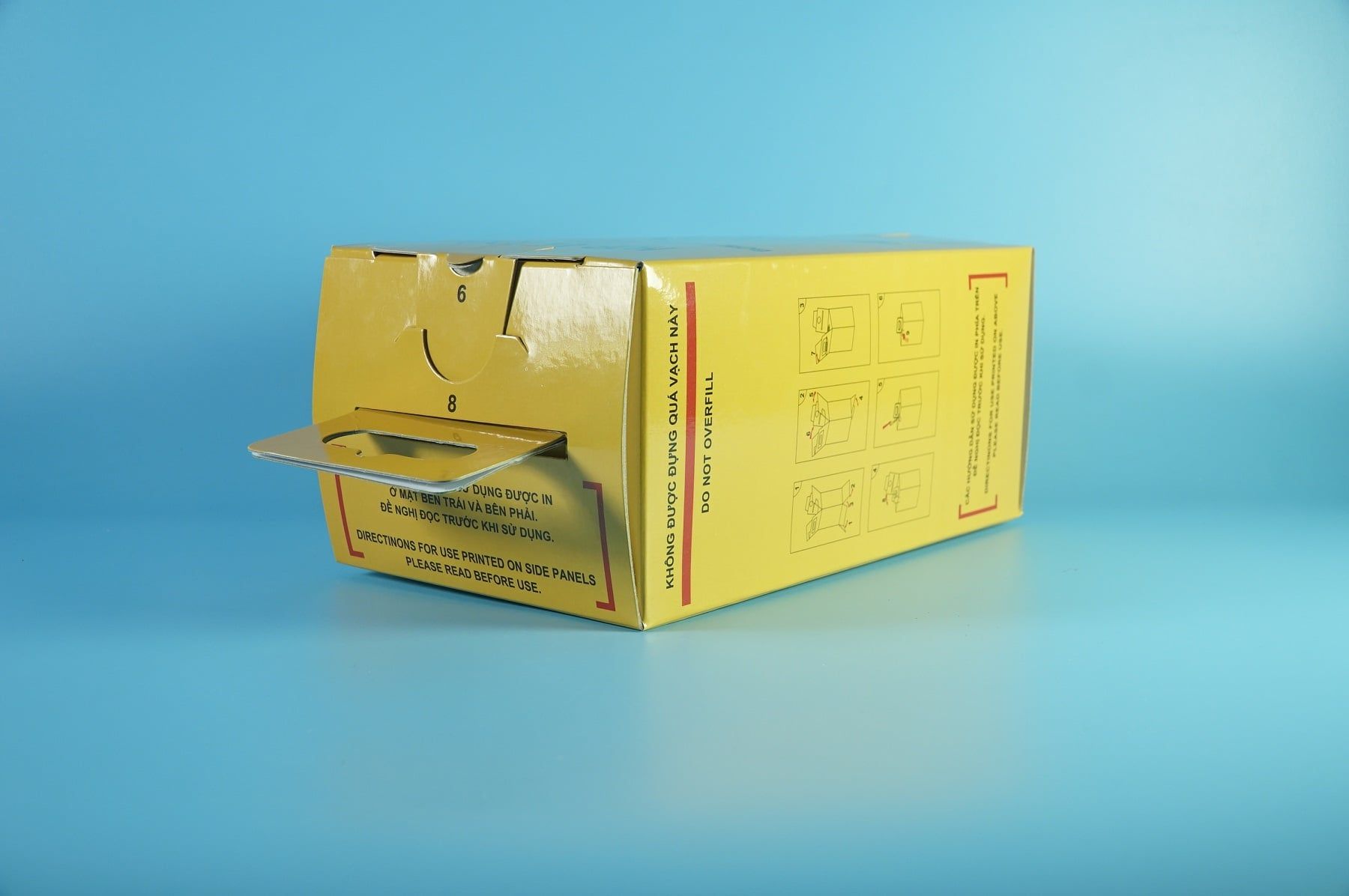 - Hộp hủy kim y tế giấy gấp gọn AP không chỉ dễ sử dụng mà còn thuận tiện trong việc xử lý sau khi dùng. Sau khi chứa đầy kim tiêm và rác y tế, hộp có thể dễ dàng niêm phong và tiêu hủy theo các quy trình xử lý rác thải y tế mà không gây ra nguy cơ rò rỉ hay ô nhiễm. Khả năng phân hủy sinh học của giấy giúp việc tiêu hủy trở nên dễ dàng và ít gây hại cho môi trường hơn so với các loại chất thải y tế khác.