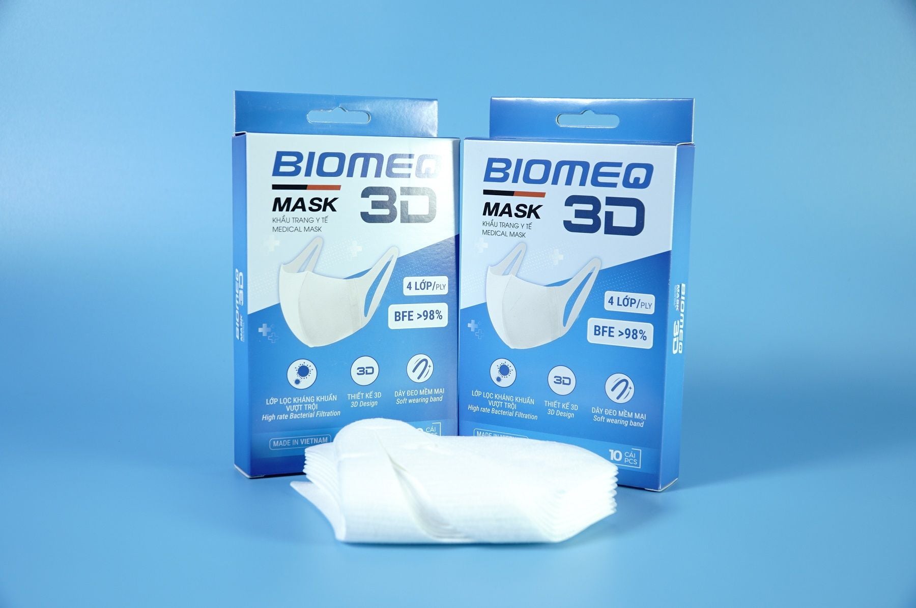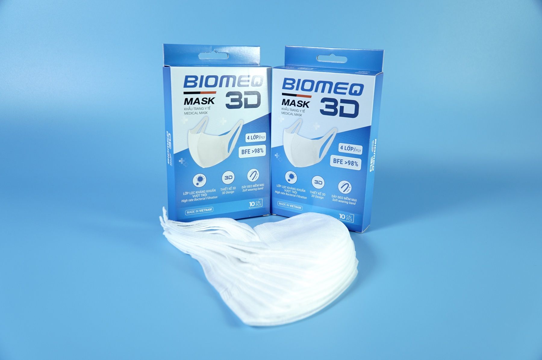- Mỗi hộp khẩu trang Biomeq Mask 3D được đóng gói trong bao bì chắc chắn, giữ cho sản phẩm luôn trong tình trạng tốt nhất khi đến tay người tiêu dùng. Hơn nữa, bao bì với thiết kế in ấn đẹp mắt không chỉ tạo nên sự sang trọng, mà còn thể hiện sự chăm chút trong từng chi tiết.