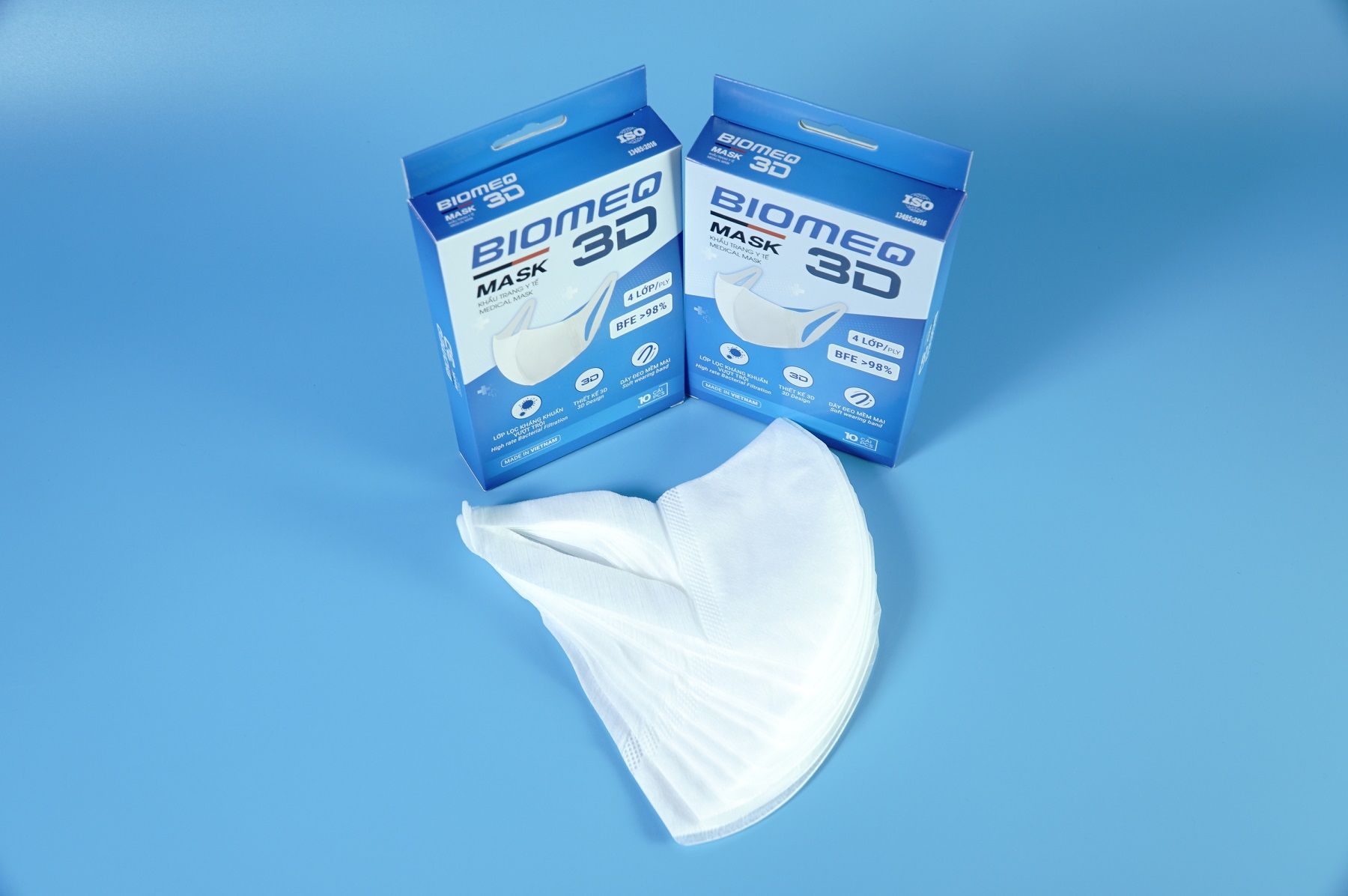 - Biomeq Mask 3D được sản xuất hoàn toàn tại Việt Nam, dưới sự giám sát nghiêm ngặt về chất lượng, đảm bảo đạt tiêu chuẩn ISO. Với tiêu chuẩn cơ sở và công bố lưu hành rõ ràng, bạn hoàn toàn có thể tin tưởng vào chất lượng của sản phẩm, mỗi chiếc khẩu trang đều có tem nhãn đầy đủ, thể hiện sự trách nhiệm và uy tín của nhà sản xuất.
