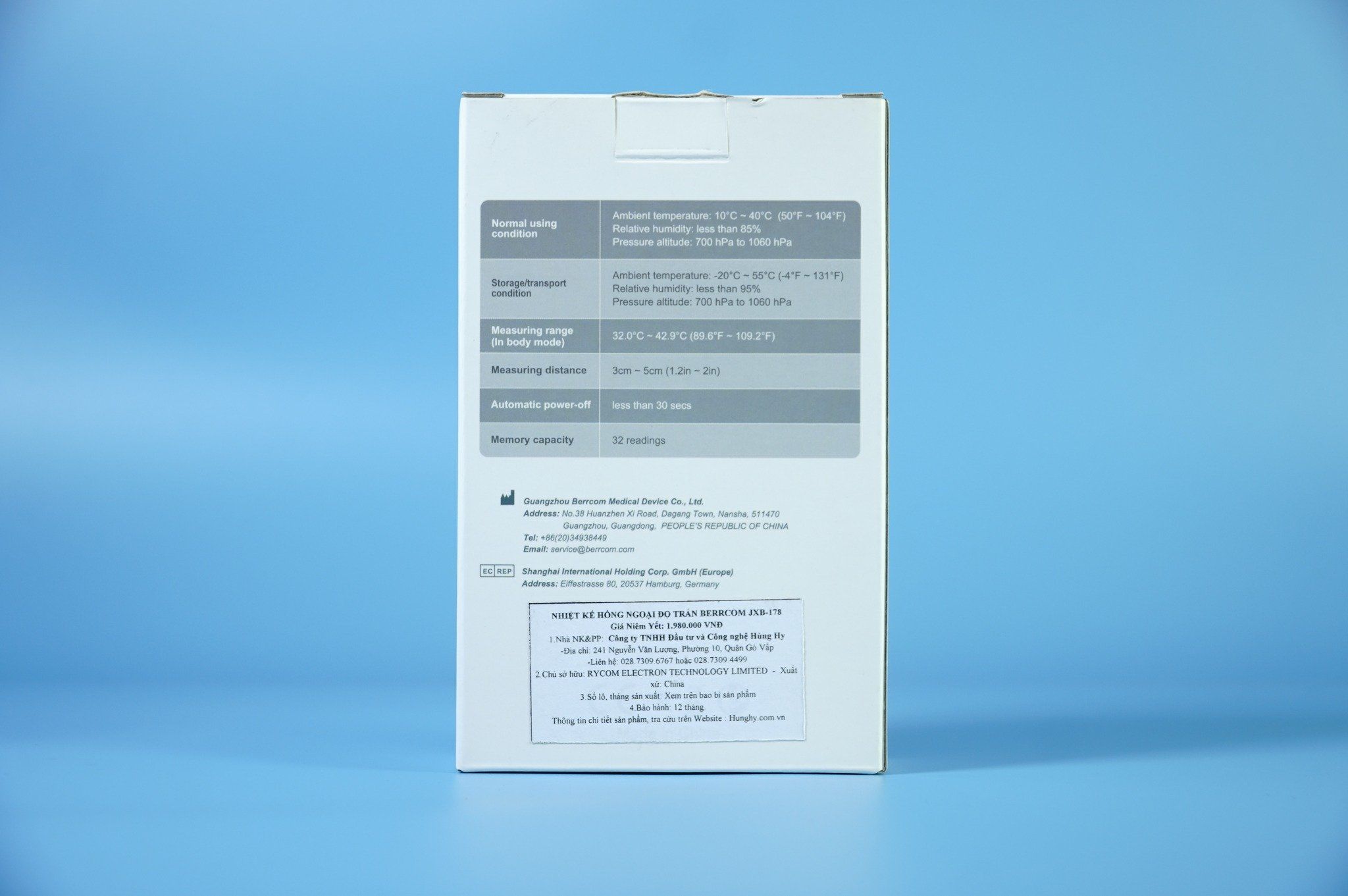 - Với uy tín đã được khẳng định và những tiêu chuẩn chất lượng nghiêm ngặt, thương hiệu Berrcom đã ghi danh tên mình vào danh sách hàng đầu trong ngành sản xuất thiết bị y tế. Berrcom JXB-178 không chỉ là sản phẩm đo nhiệt độ thông thường, mà còn là một công cụ hữu ích trong việc duy trì sức khỏe gia đình.